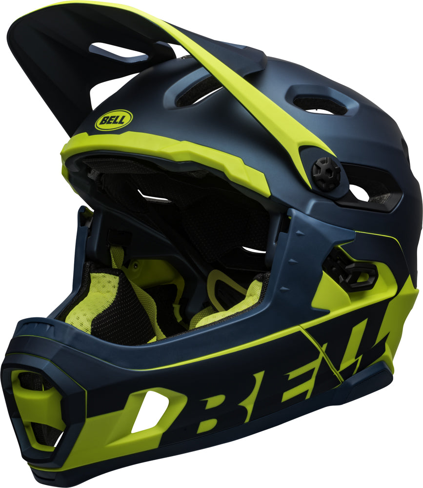 BELL SUPER DH SPHERICAL HELMETS Take the versatility of our best-selling Super 3R and evolve it into a premium, Downhill-certified helmet featuring a removable chin bar and our highly advanced Spherical Technology™. THE HARD CHARGER Built for the hard charger, the Super DH is most at home on steep terrain—featuring Spherical Technology and full DH certification. Spherical Technology's Ball-and-Socket design, powered by MIPS®, helps redirect impact forces away from the brain by allowing the outer liner to rotate around the inner liner during a crash. The Super DH is loaded with additional features—including a 360-degree wraparound, tool-free removable chin bar beefy enough to satisfy the rigors of ASTM 1952 testing, a huge eyeglass and goggle-friendly eye port, an adjustable-height visor, snap-in camera mount, Overbrow Ventilation and X-Static padding, and a quality fit that is second to none. The end result is uncompromising protection and performance, and unparalleled versatility. The Super DH is ready to take World Cup DH runs on the chin, bang out bike park laps until the chairlifts stop running, or settle into hours of back-country uphill grinding in search of that perfect ribbon of high-consequence singletrack. SPECIFICATIONS