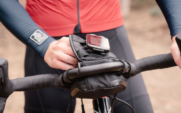 The optional bike computer mount is compatible with Garmin and Wahoo computers and allows you to securely mount your bike computer on top of the bag in an ideal location just in front of the stem. Since the bag is fully supported by the alloy loop of the handlebar, the mount is very stable.